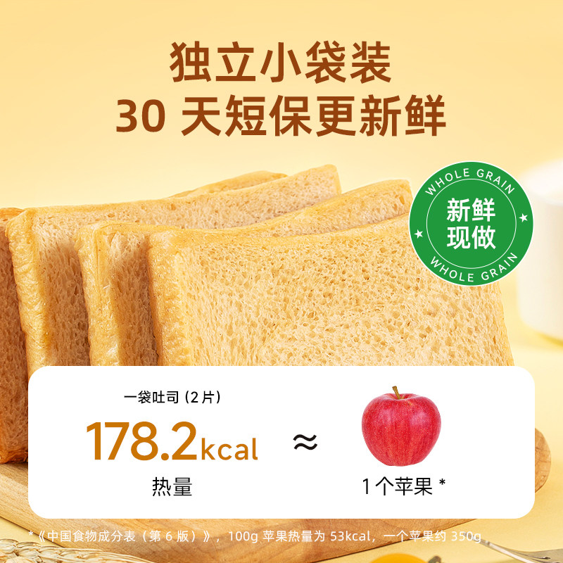 吉零燕麦全麦黄油吐司全谷物切片手撕面包点心蛋糕三明治早餐整箱