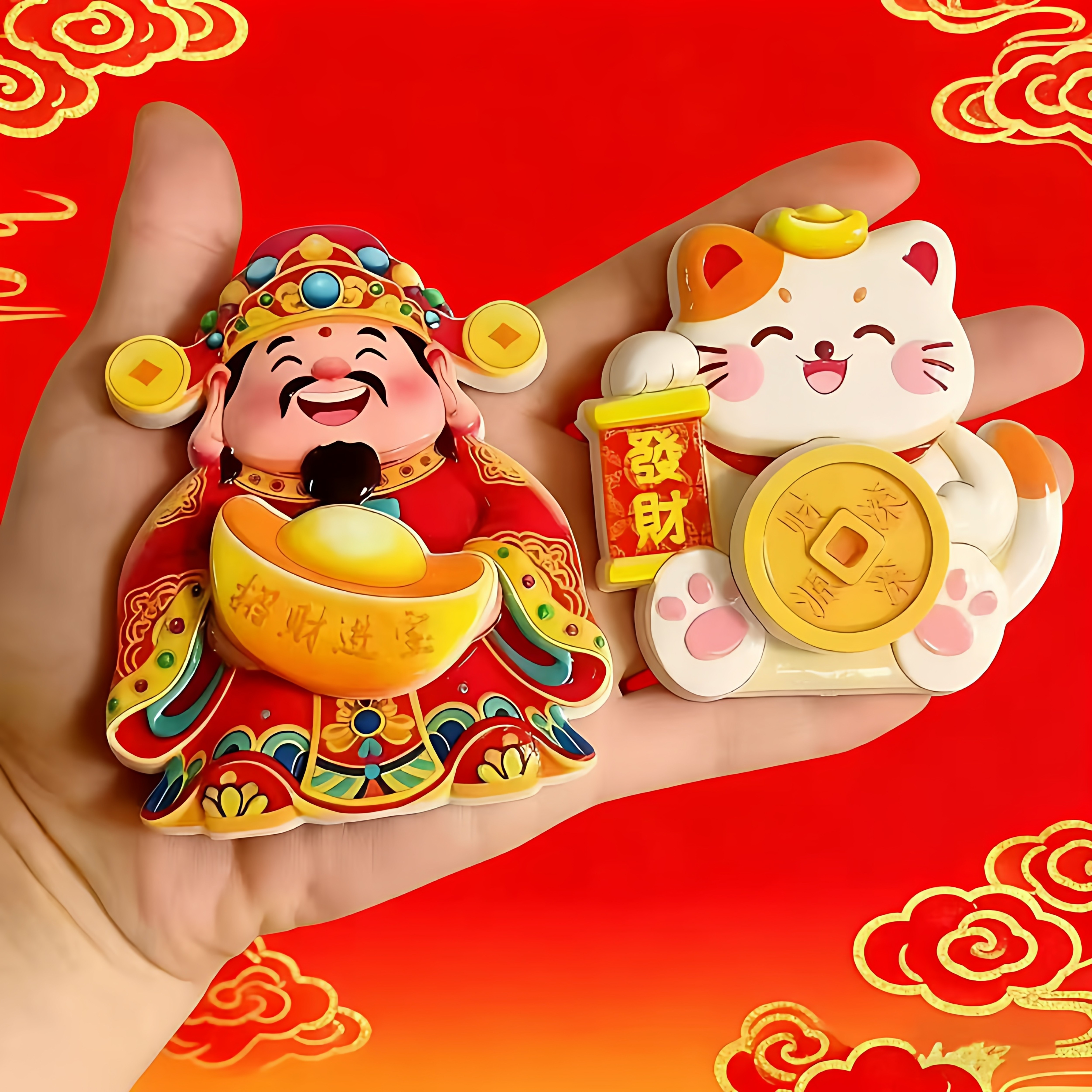 财神转钱冰箱贴陶瓷摇头招财纳福摆件饰品喜庆装饰贴招财猫冰箱贴