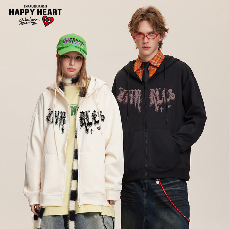 查尔斯桃心 美式开衫连帽卫衣男春秋季2025新款潮牌百搭休闲外套