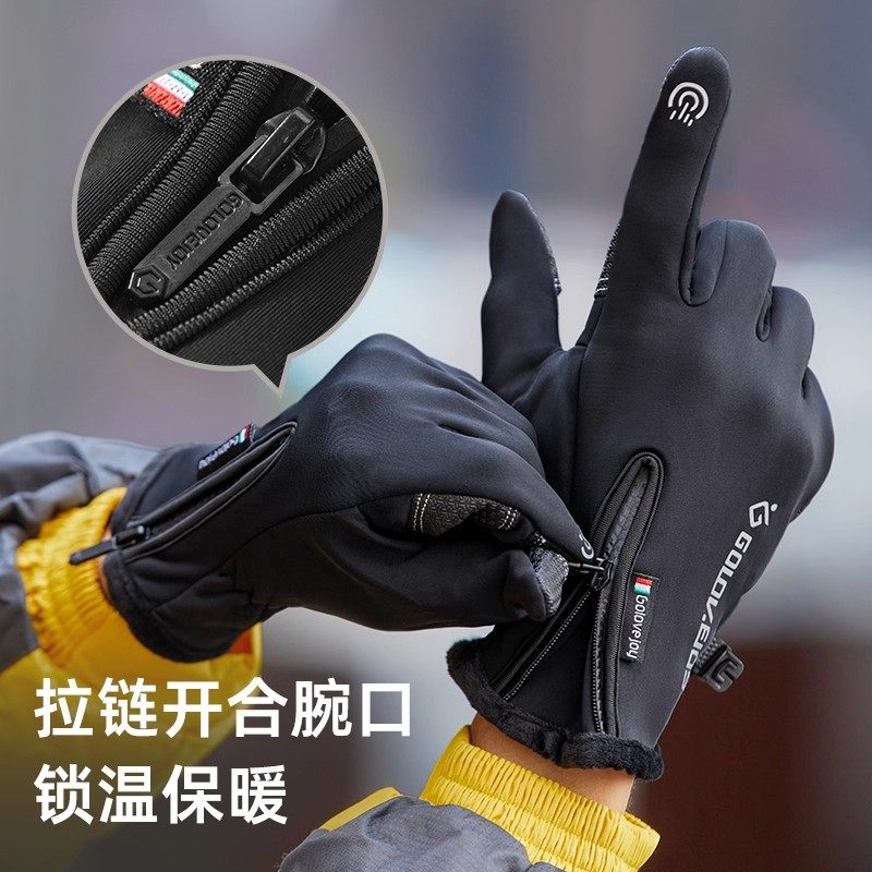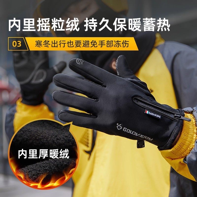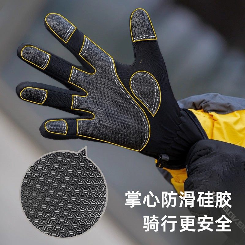 骑行手套男冬季骑手外卖装备电动摩托车露指触屏加绒保暖防水防寒