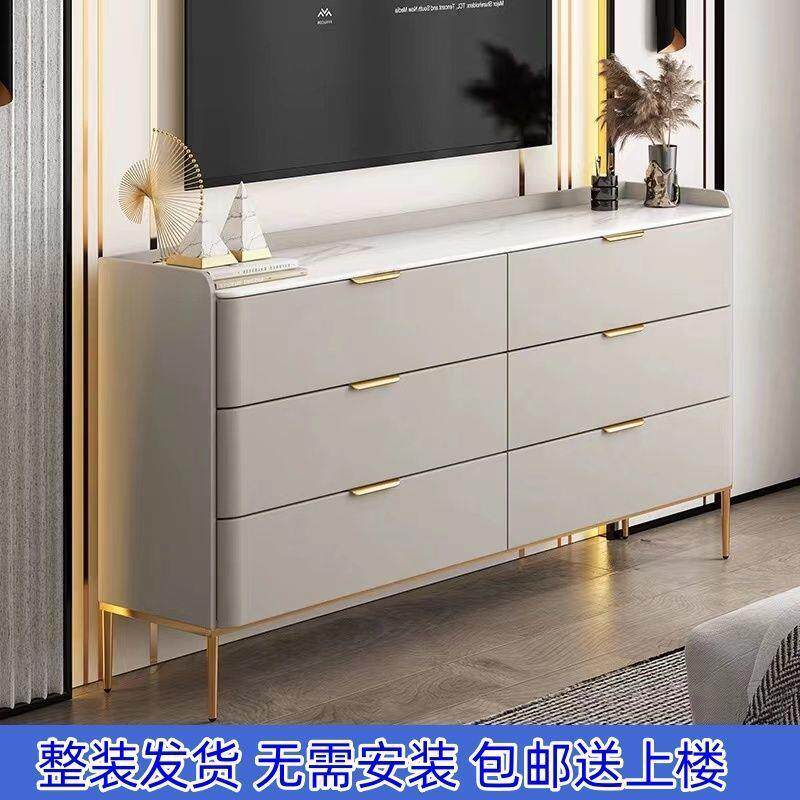 简约实木五斗柜卧室客厅靠墙抽屉式收纳柜北欧岩板皮质九斗橱整装