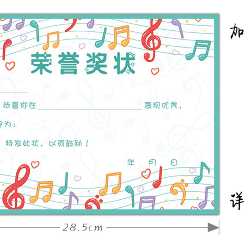 a4音乐舞蹈班奖状纸 幼儿园 小学通用乐器钢琴可定制奖状包邮