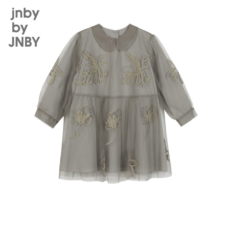 江南布衣童装长袖网纱连衣裙公主风兰花刺绣秋女童儿童jnbybyjnby