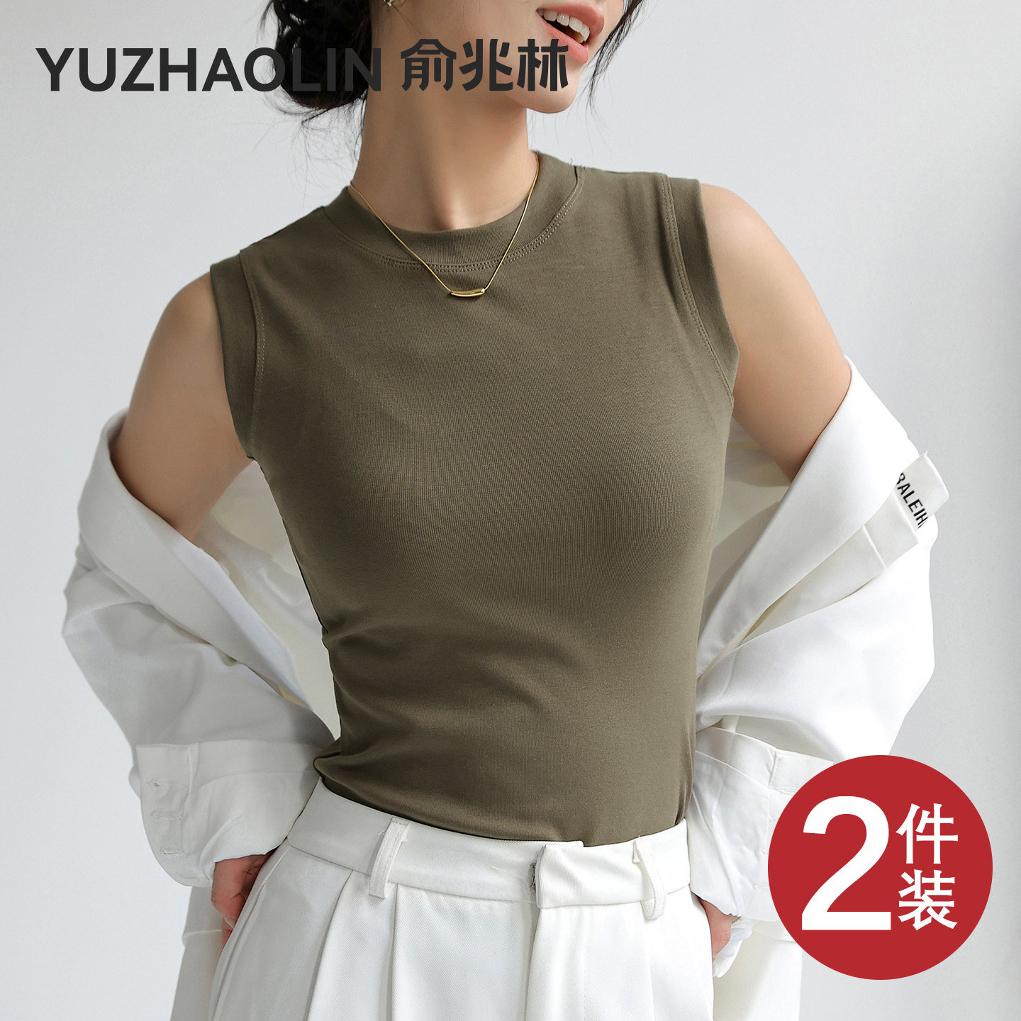 薄款莫代尔圆领背心女夏外穿无袖T恤宽松内搭打底衫百搭纯色上衣