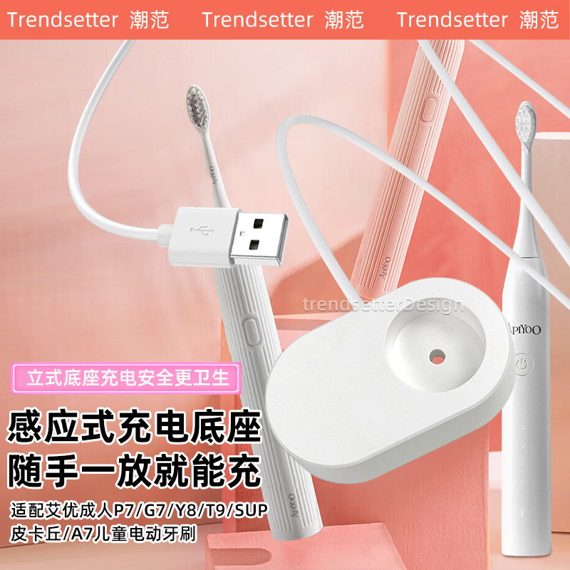 适配艾优电动牙刷充电器P7/G7/Y8/T9/SUP/皮卡丘A7成人儿童牙刷站立感应底座 白/黑/粉紫/深蓝/浅蓝五色可选