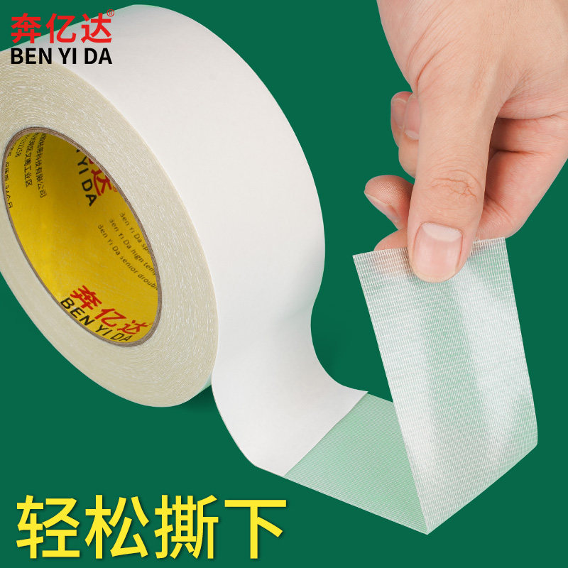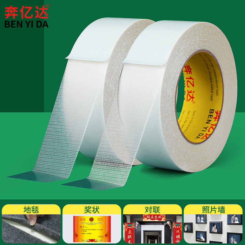 奔亿达纤维网格双面胶不留痕高粘度强力固定粘地毯专用胶透明加厚网状粘贴墙面奖状海报春联可撕防水布基胶带