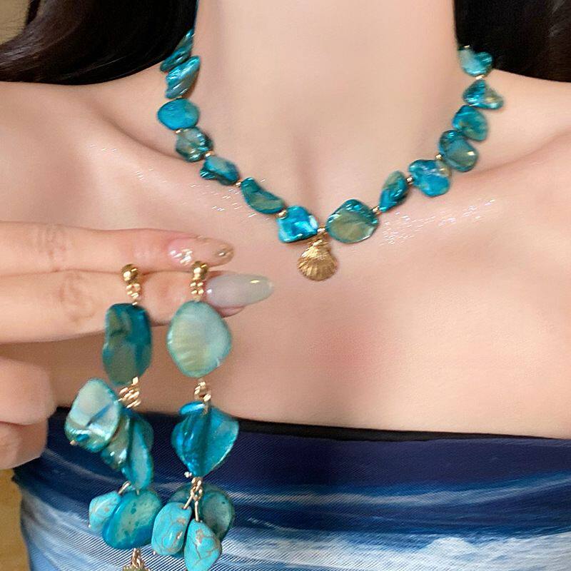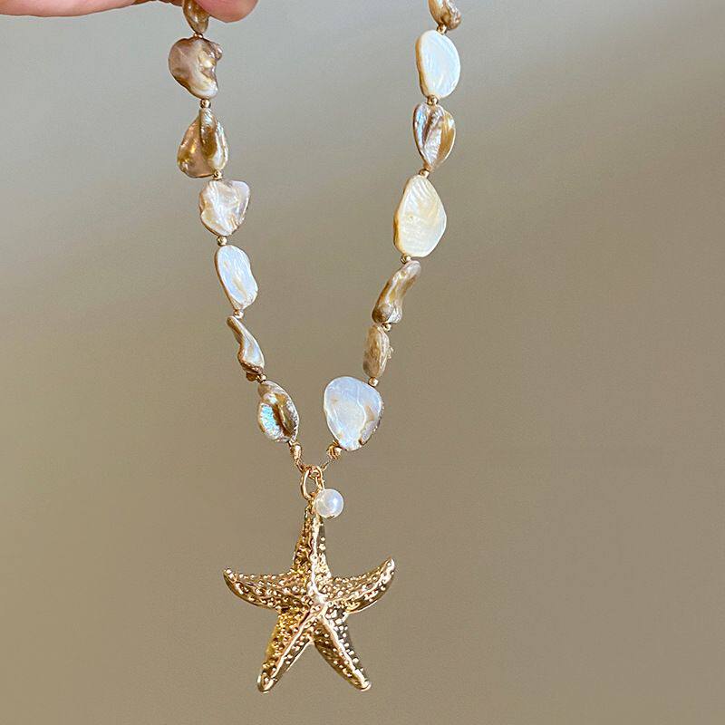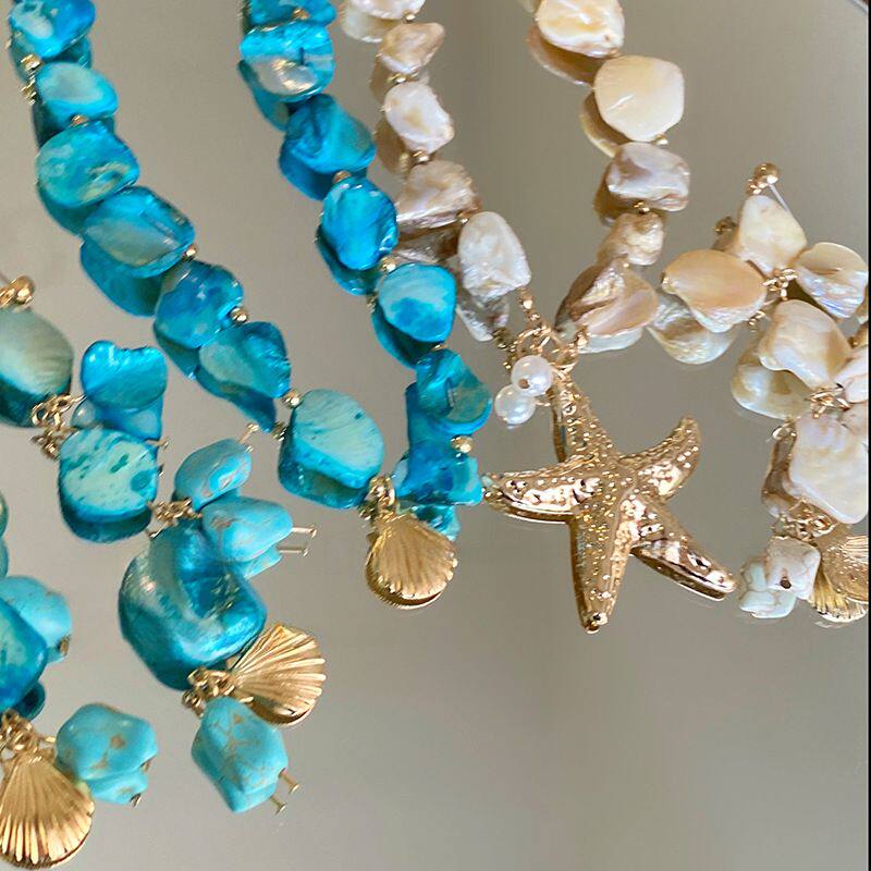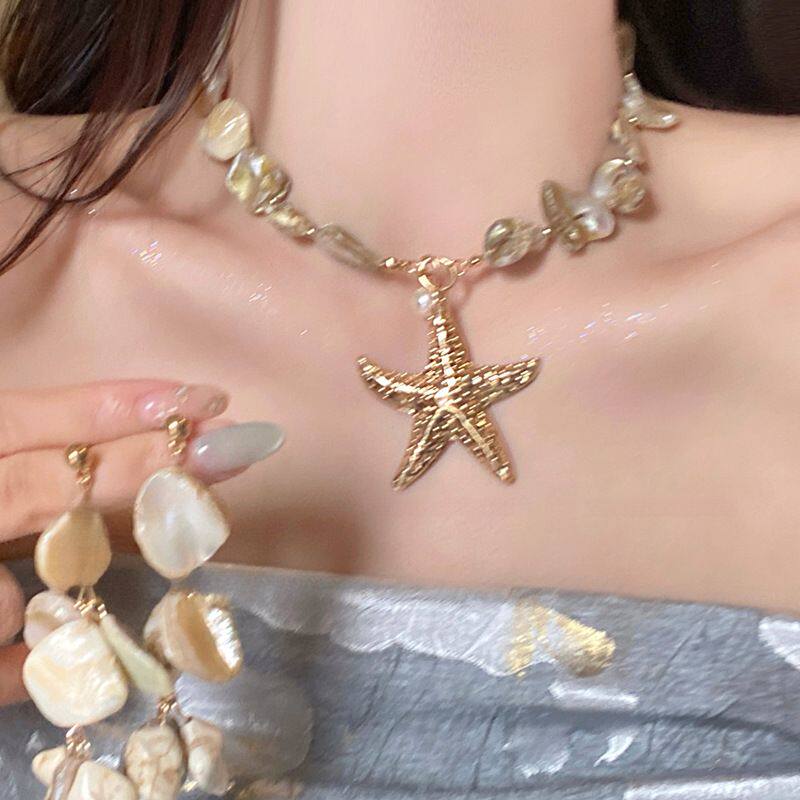 波西米亚风贝壳海星仿珍珠项链耳环手链套装海边度假风独特首饰女