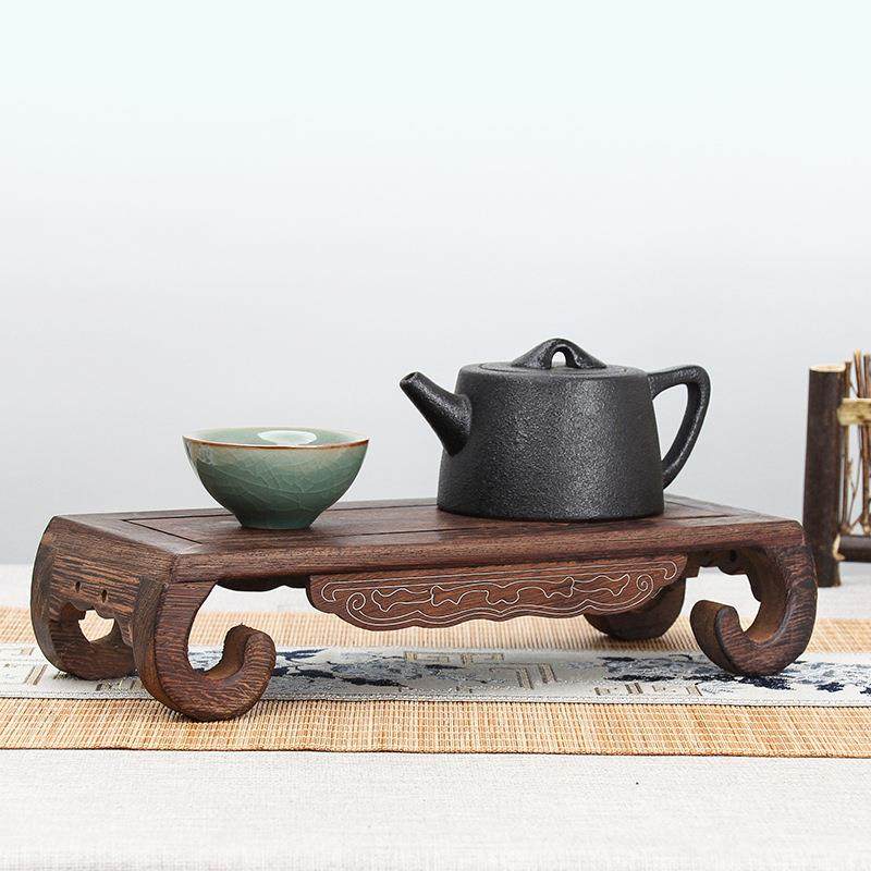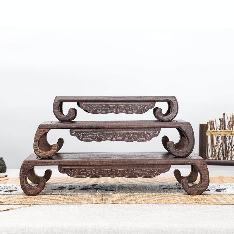 鸡翅木雕花套三底座工艺品奇石玉石底座紫砂壶长方形书卷底座摆件
