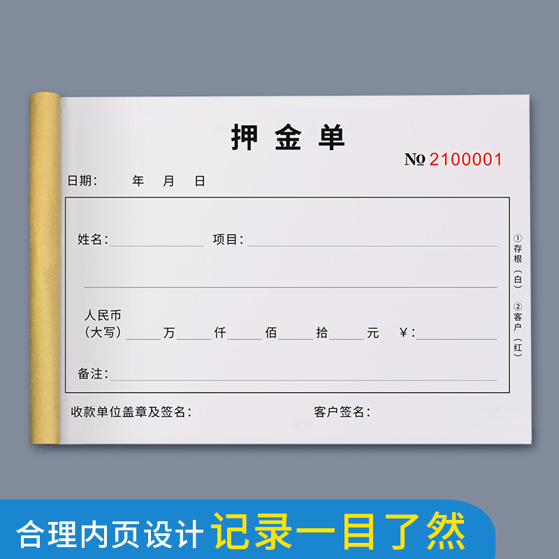 押金单物品寄存押金单婚纱礼服租赁押金租车收据酒店订房押金订餐订水空桶押金收据行业通用物业装修押金收条