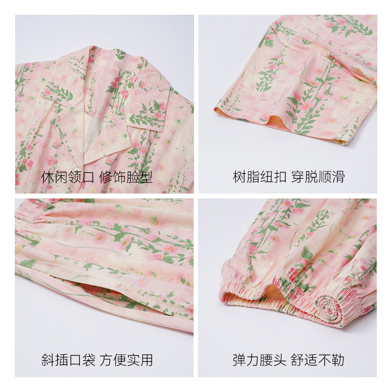猫人睡衣女款2025新款夏季莱赛尔女士短袖长裤素雅舒适家居服套装