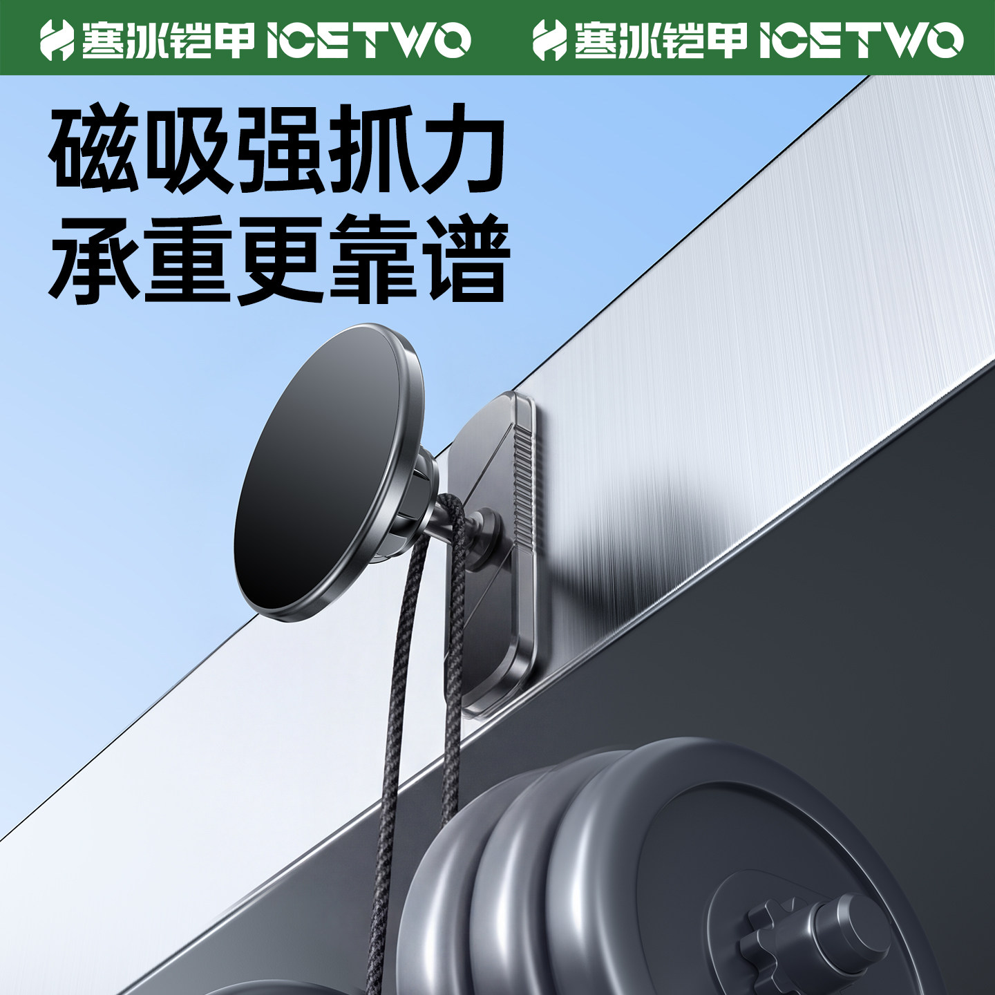 寒冰铠甲双磁吸手机支架高尔夫健身房器械拍摄专用双向MagSafe强力磁铁底座铝合金便携墙上自拍神器多功能架