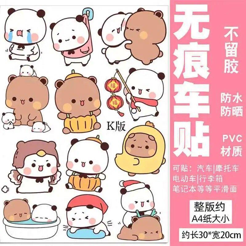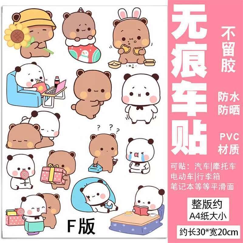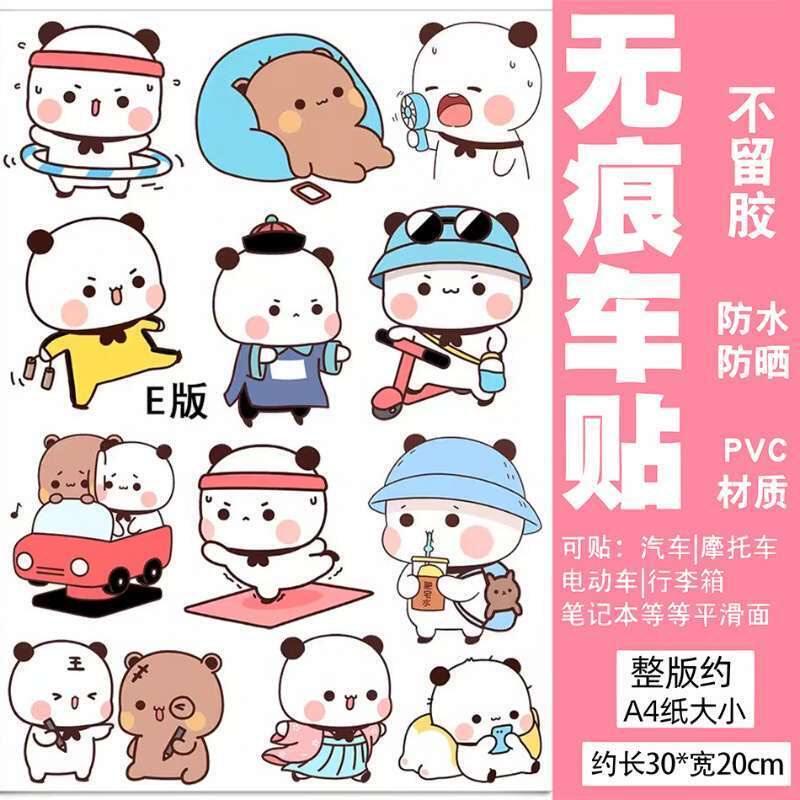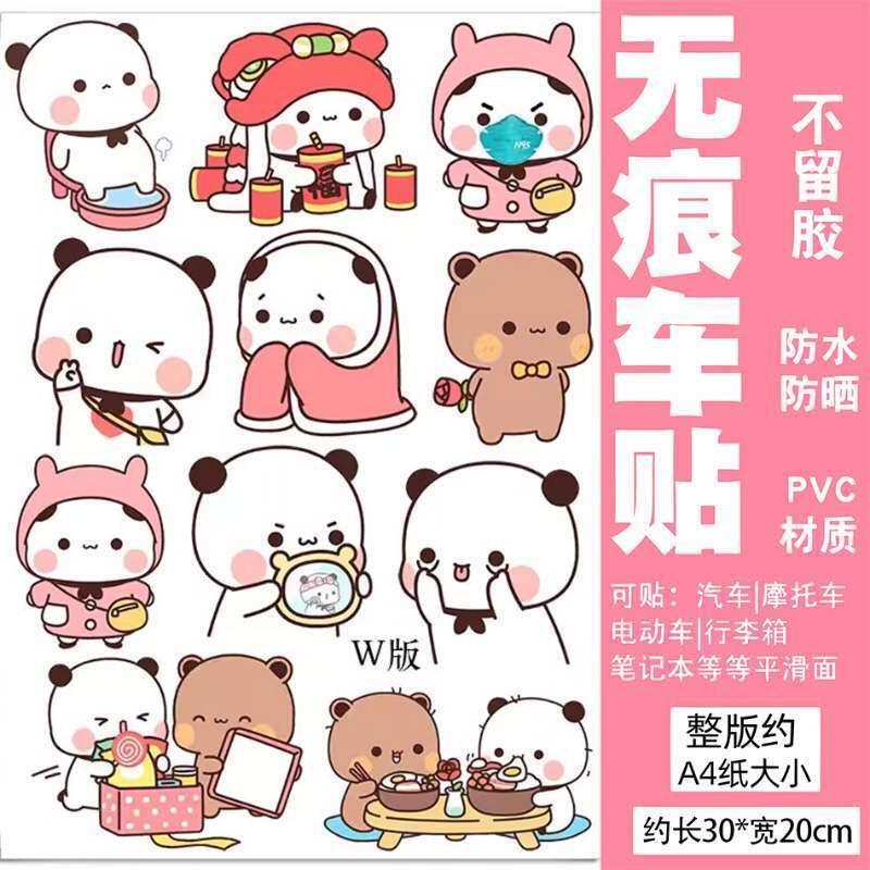 熊猫一二贴纸卡通可爱贴纸划痕遮挡保险杠车身头盔电动冰箱装饰贴