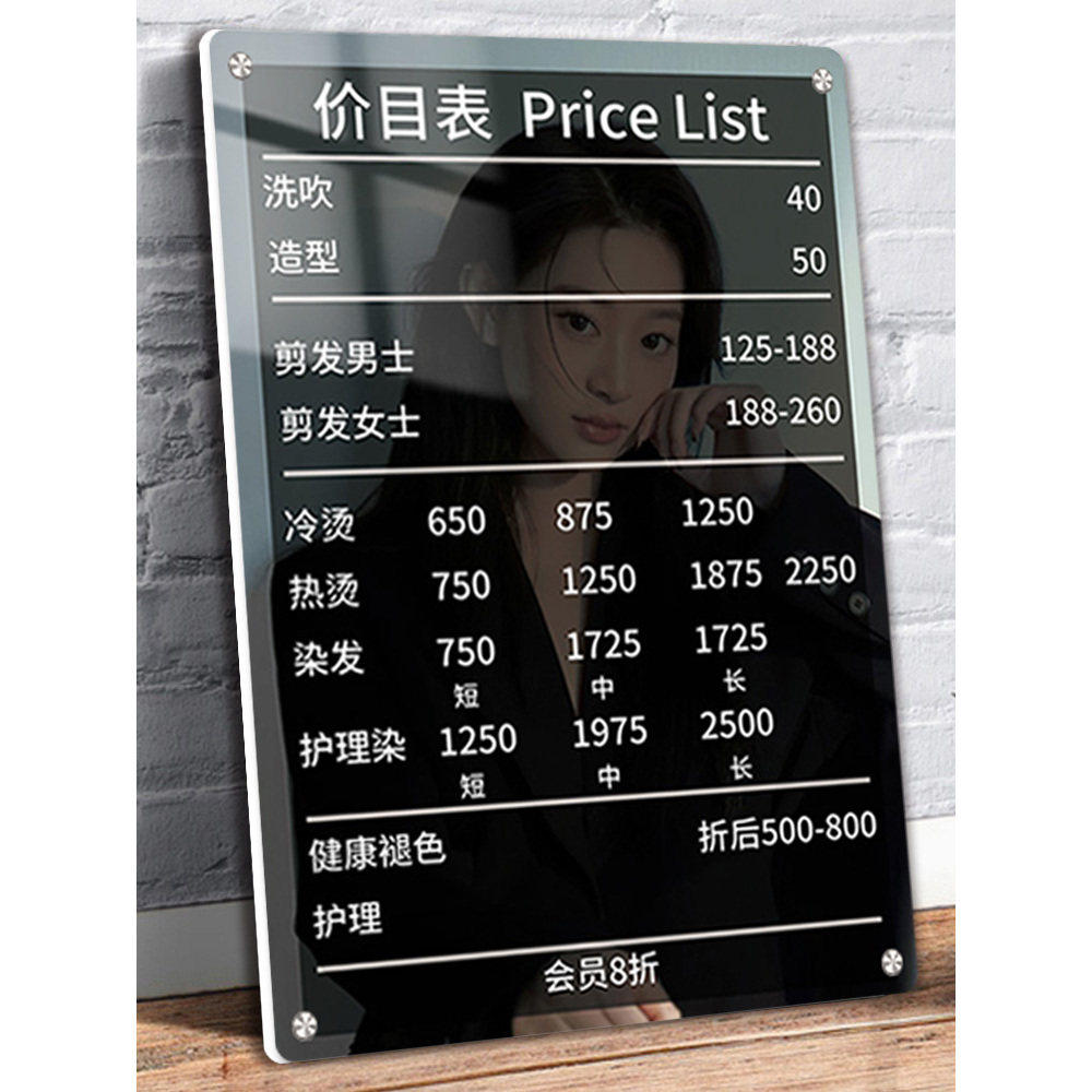 理发店价目表展示牌定制美业美发店价格牌设计亚克力价格表美容院发廊标价广告牌美甲养生桌球价位墙贴提示牌