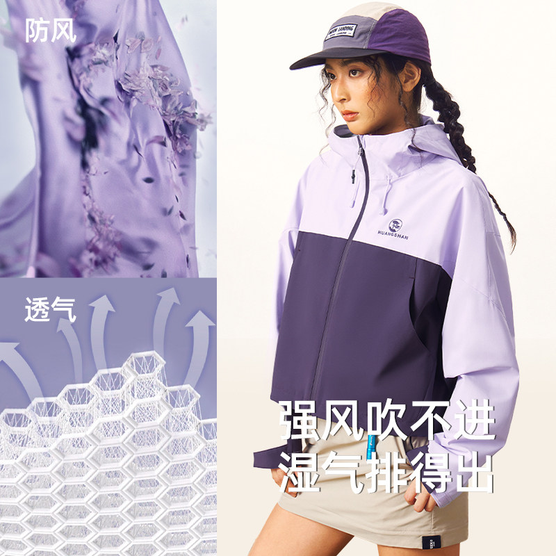 黄山联名骆驼彩壳夹克26年新款户外带帽短外套男女款防泼水登山服