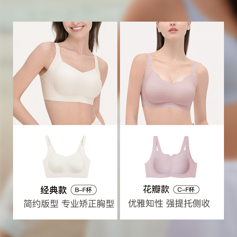 ubras大胸显小防下垂收副乳文胸无痕透气聚拢无钢圈女文胸罩内衣