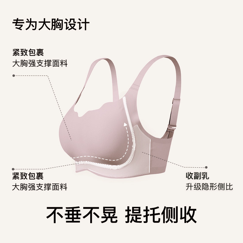 润微提拉女王内衣女大胸显小无痕大码调整防下垂收副乳粉底液文胸