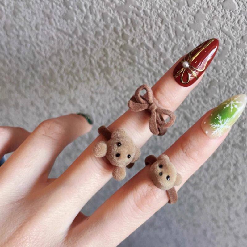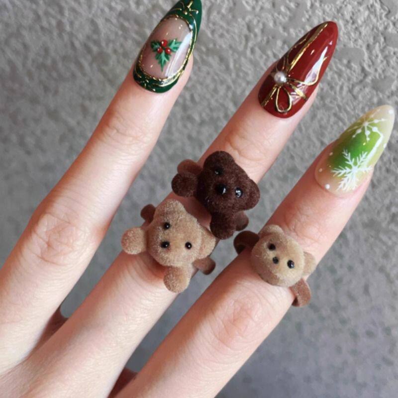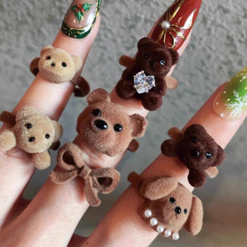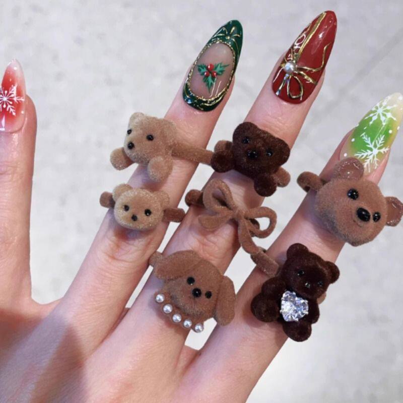 可爱棕色小熊开口戒指女2025叠戴指环小众稀奇古怪秋冬植绒食指戒