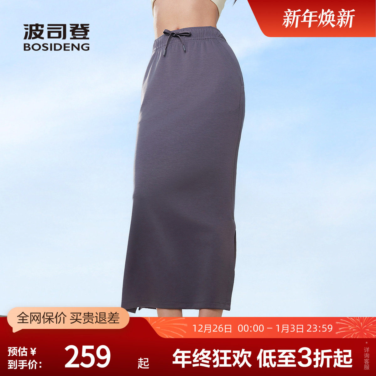 波司登奥莱2025夏季新款女士常规柔型轻运动半裙时尚轻盈直筒长裙