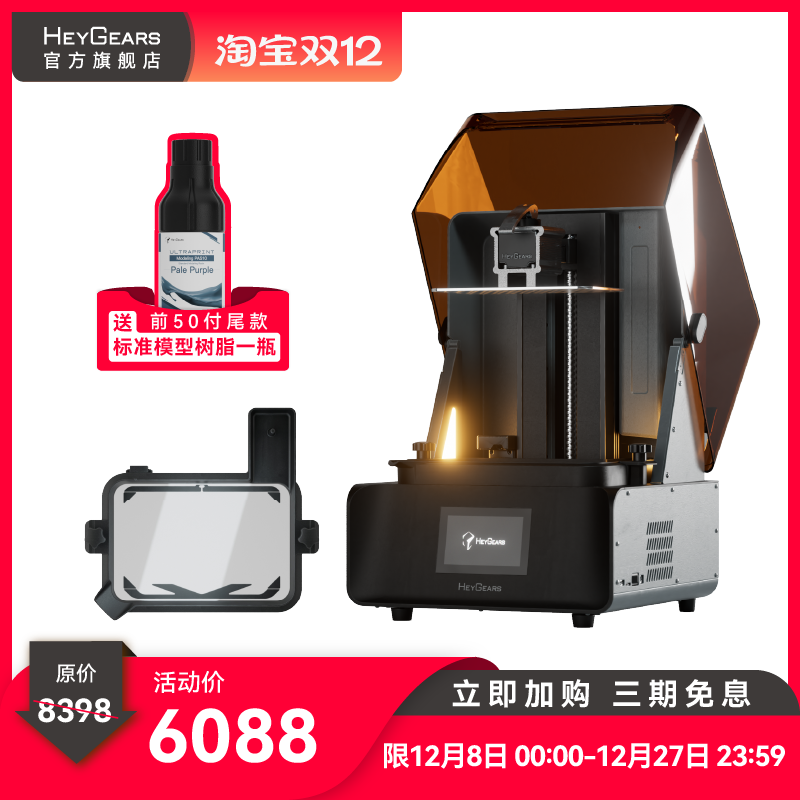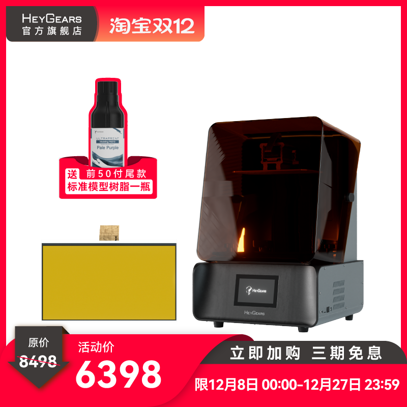 HeyGears/黑格Reflex RS光固化3d打印机大幅面桌面家用高精度快速3D打印机消费级手办模型