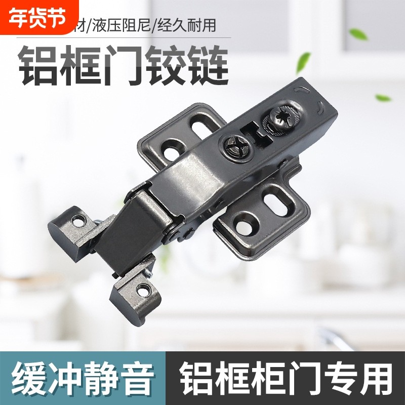 铝框铰链玻璃门枪五金黑色20窄边框缓冲阻尼液压门铰橱柜合页