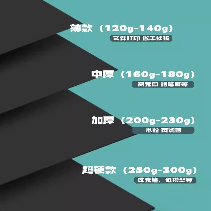 黑卡纸美术绘画专用厚硬8k画画a4黑色卡纸a3硬卡纸4开8开手抄报幼儿园手工画框裱画用马克笔4k绘图纸封面纸张