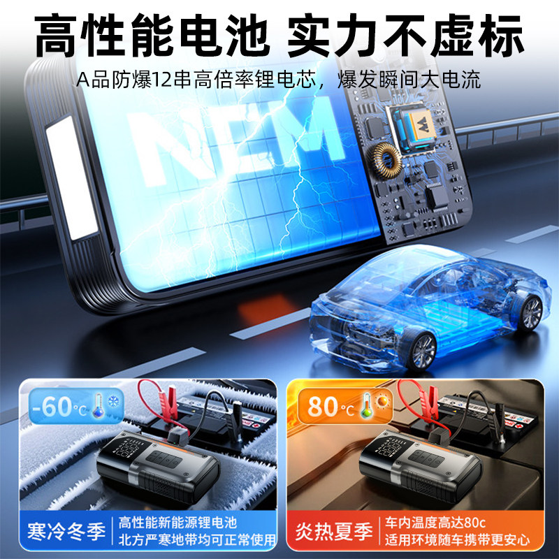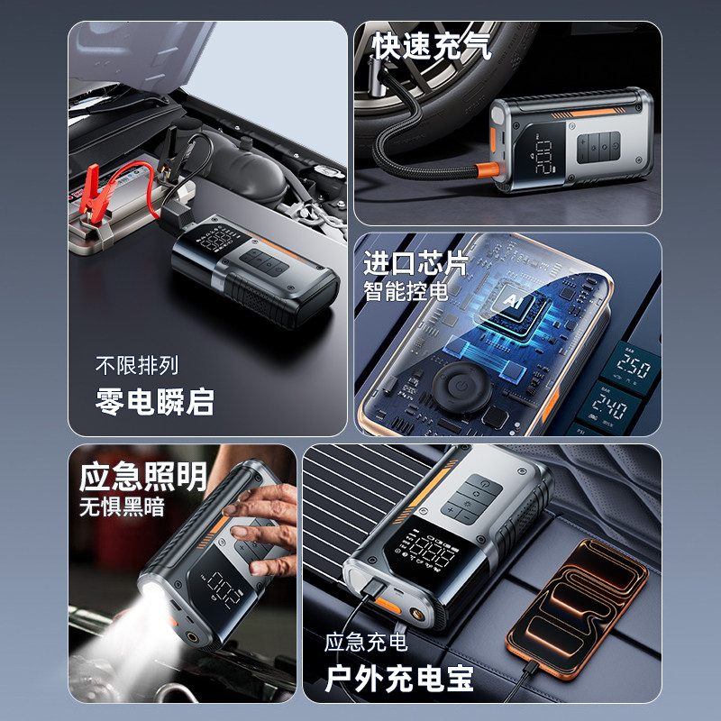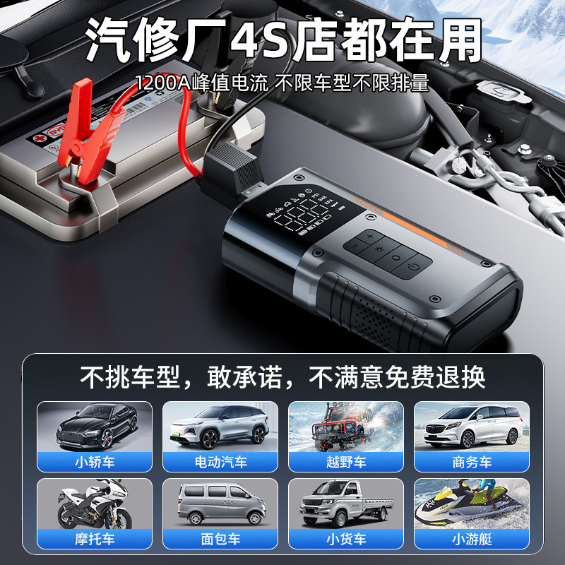 汽车紧应急启动电源车载充气泵一体机备用电瓶搭电宝强启打火神器