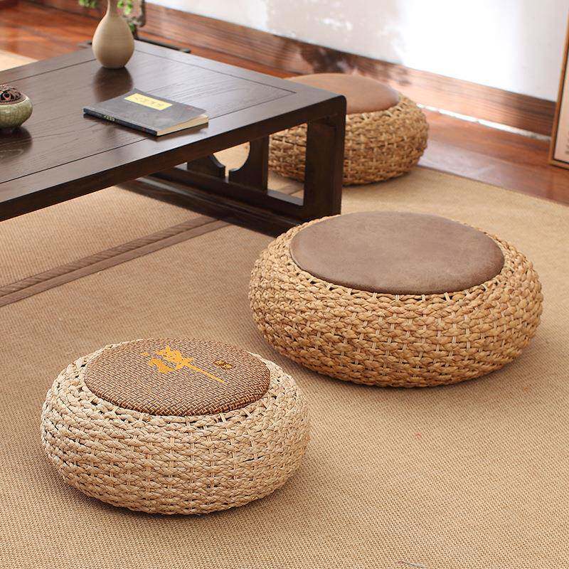 蒲团阳台厚草席圆形PU坐垫飘窗落地窗垫子草编藤编加厚蒲团