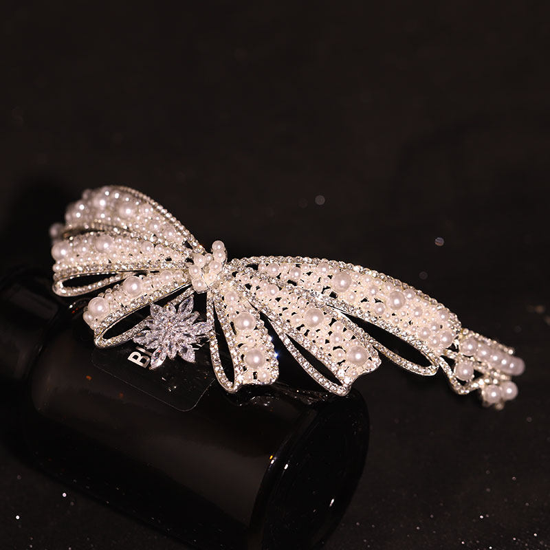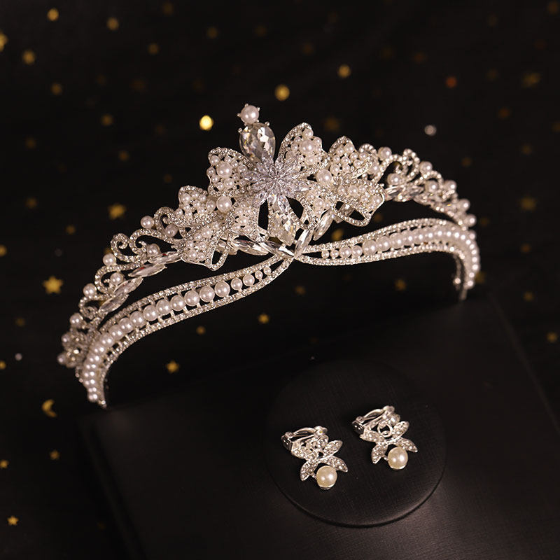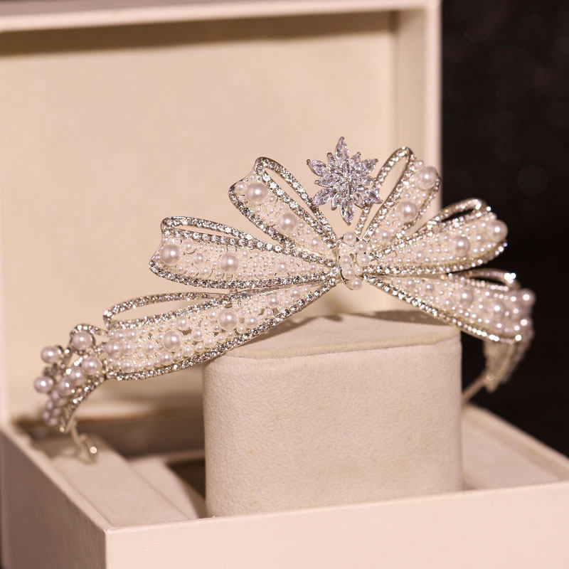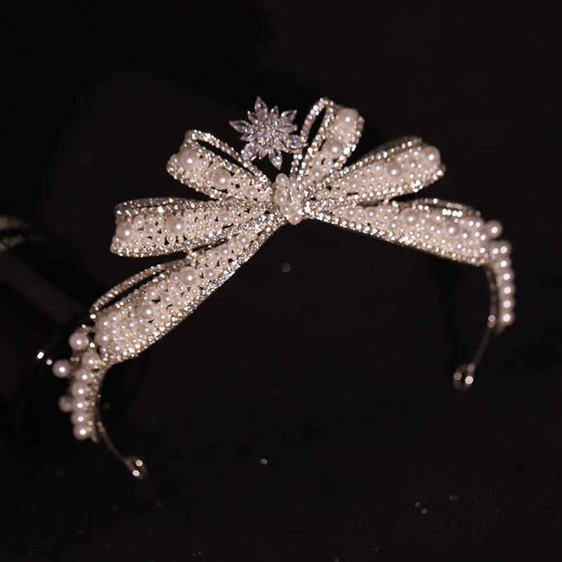 新款儿童轻奢水钻珍珠蝴蝶结皇冠头箍女童生日公主裙发饰走秀配饰