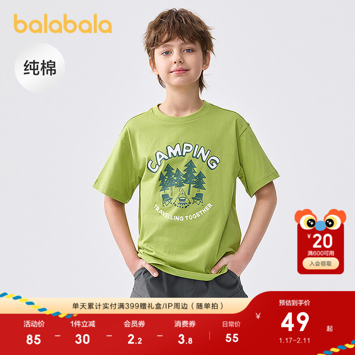 巴拉巴拉童装儿童短袖T恤男童女童2025新款夏装吸湿速干亲子上衣