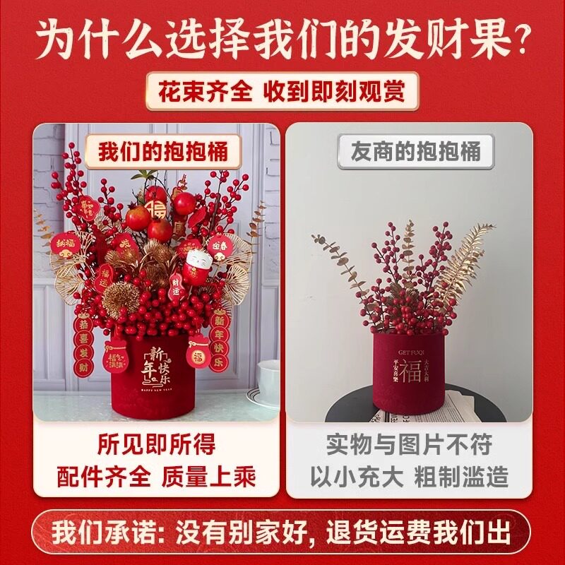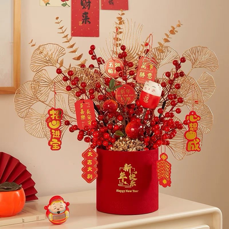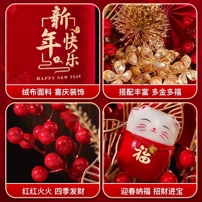 春节装饰摆件发财果红果一整套仿真花艺年宵过年福通插花新年礼物