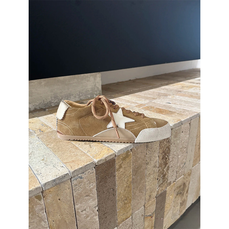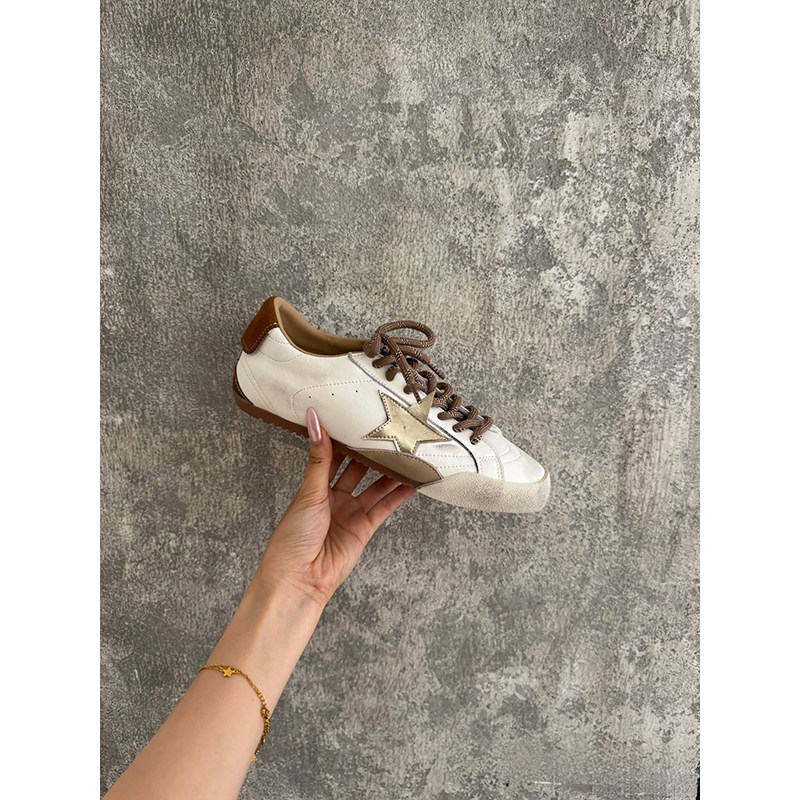 2025新款真皮做旧板鞋运动休闲星星小脏鞋女爆款平底德训鞋小白鞋