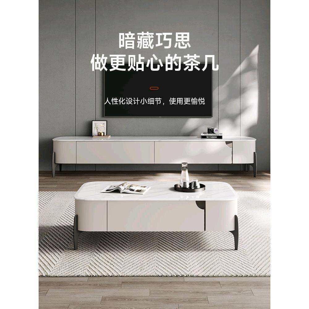意式极简微晶石茶几电视柜组合简约现代客厅家用轻奢高脚茶几地柜