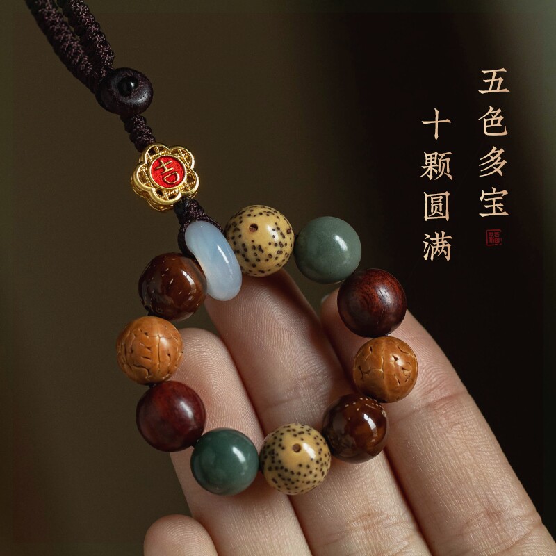 多宝菩提手机链挂件沉香木指环扣手机挂饰品檀木复古防丢精致男女