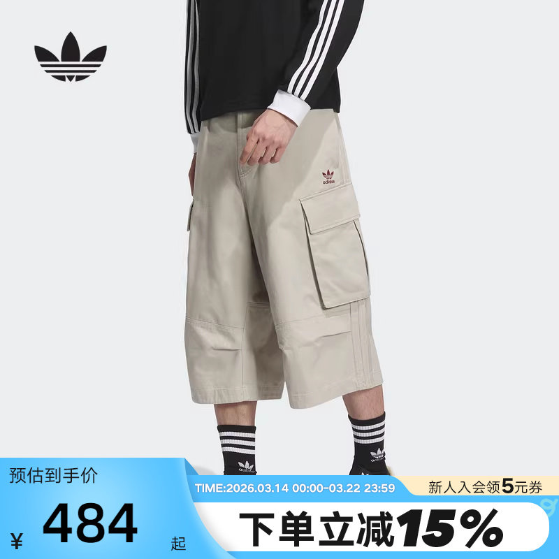 adidas阿迪达斯三叶草情侣款七分裤宽松多口袋工装运动短裤KC0297