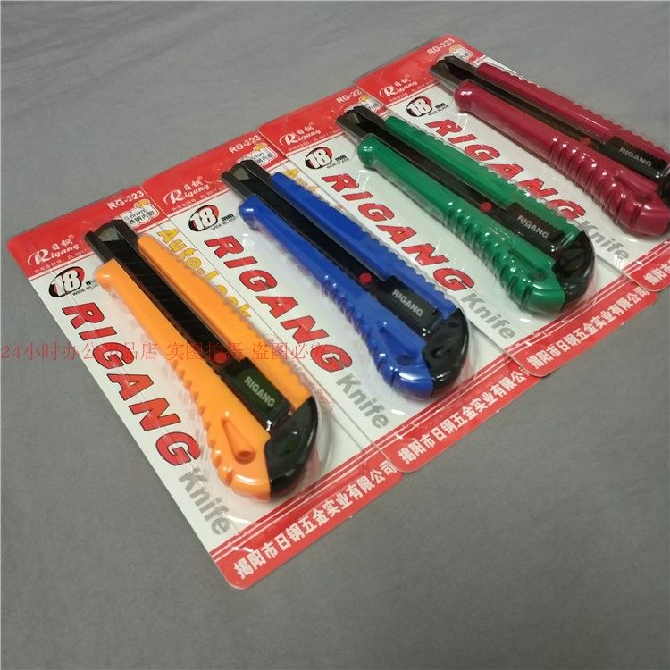 日钢RG-223大美工刀黑刃介刀裁纸刀架包装物流开箱工具10把装包邮