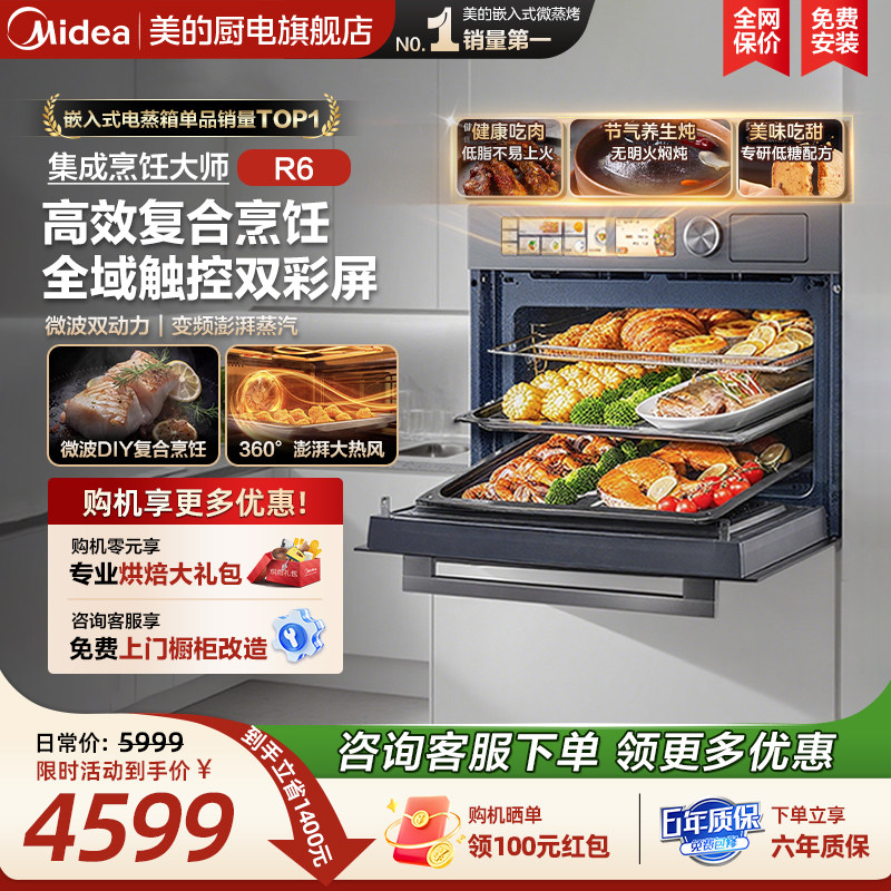 政府补贴 美的R6微蒸烤炸炖一体机嵌入式智能电蒸烤箱家用微波炉