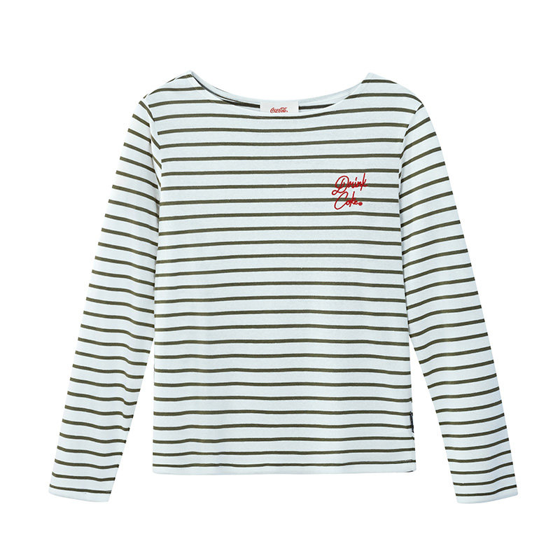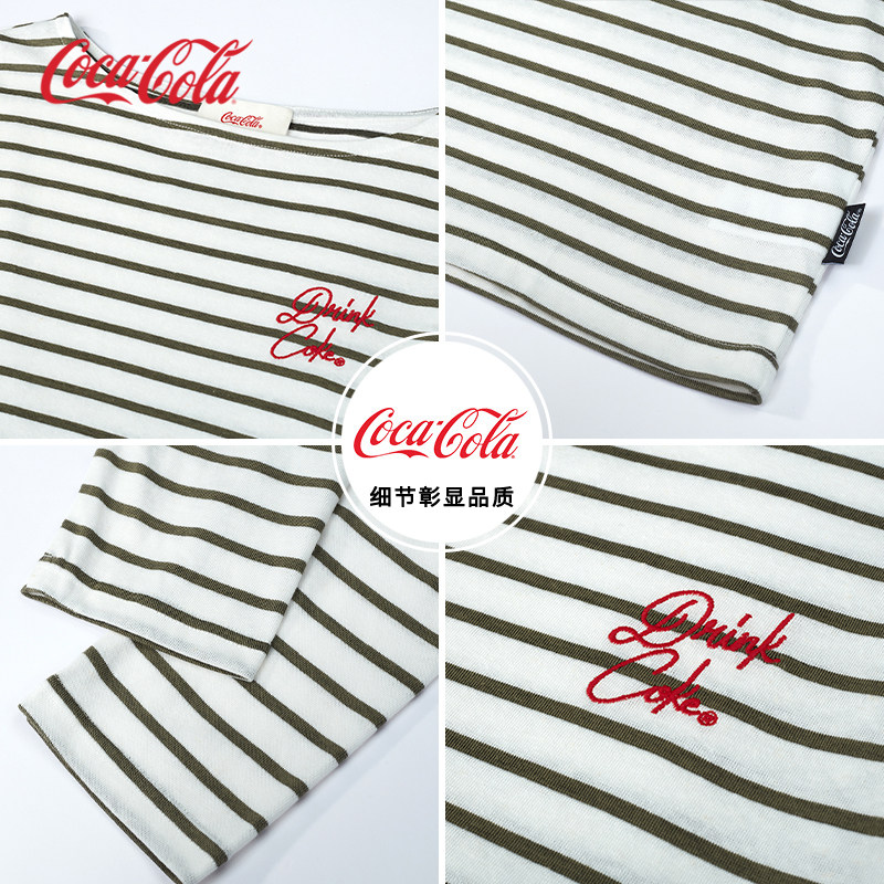 【商场同款】Coca-Cola可口可乐 条纹撞色字母刺绣长袖T恤 女款