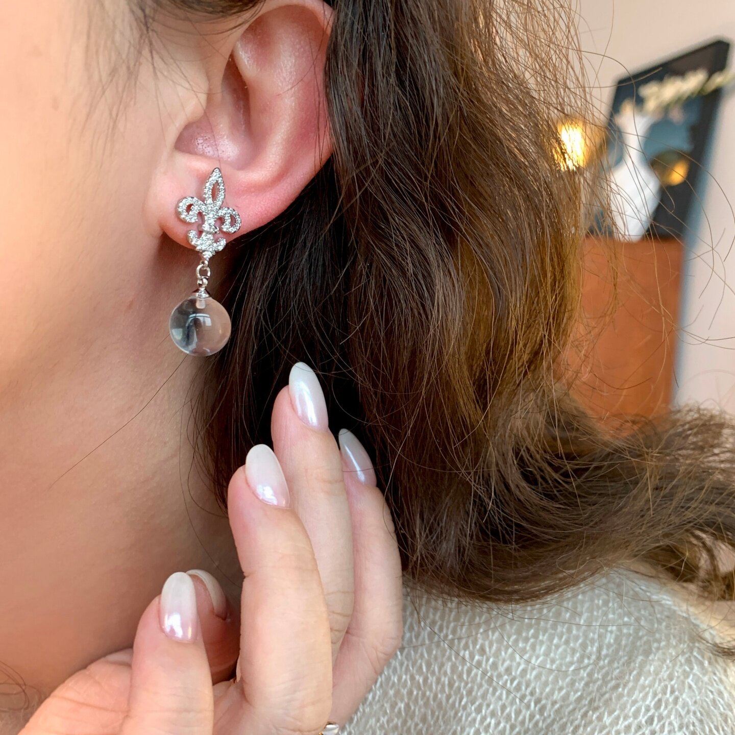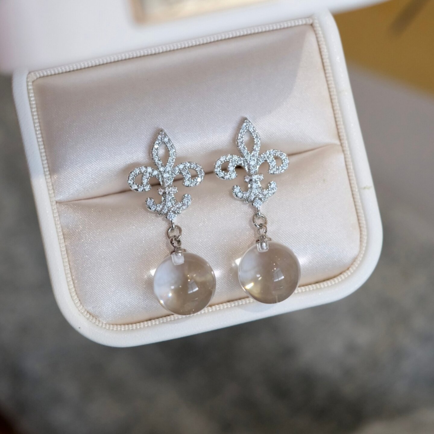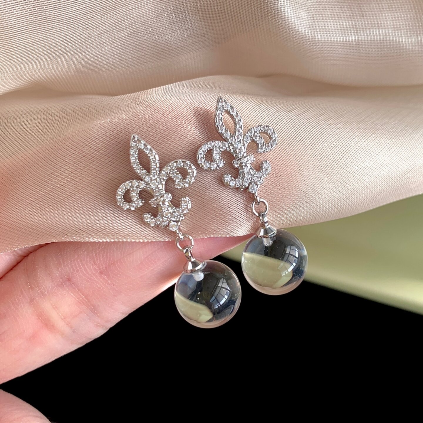 《鸢尾花露》清透轻奢精致清冷感夏天锆石白水晶耳夹耳饰耳钉耳环