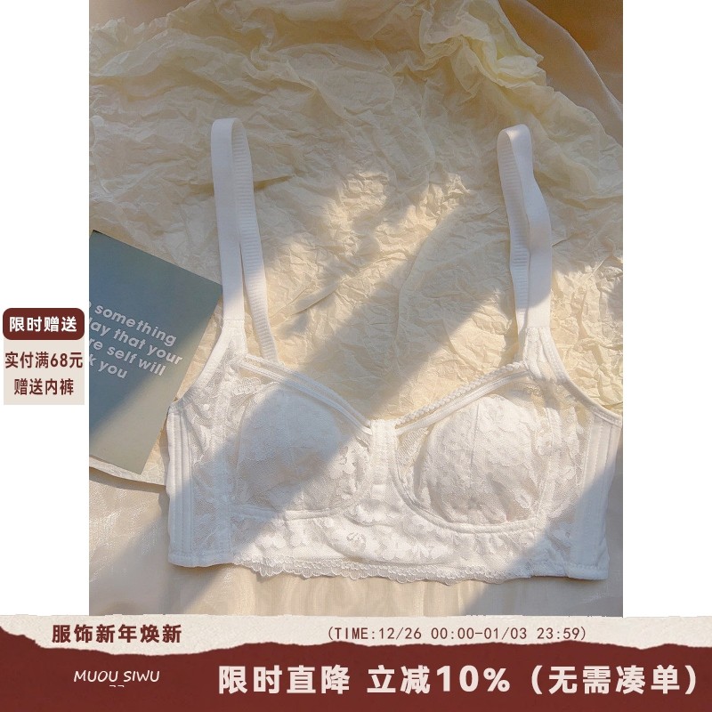 月诗风吟 超薄性感蕾丝鱼骨内衣大胸显小收副乳调整型兔耳朵文胸