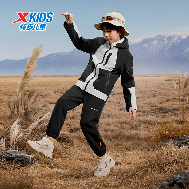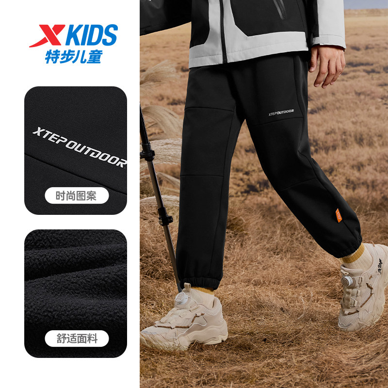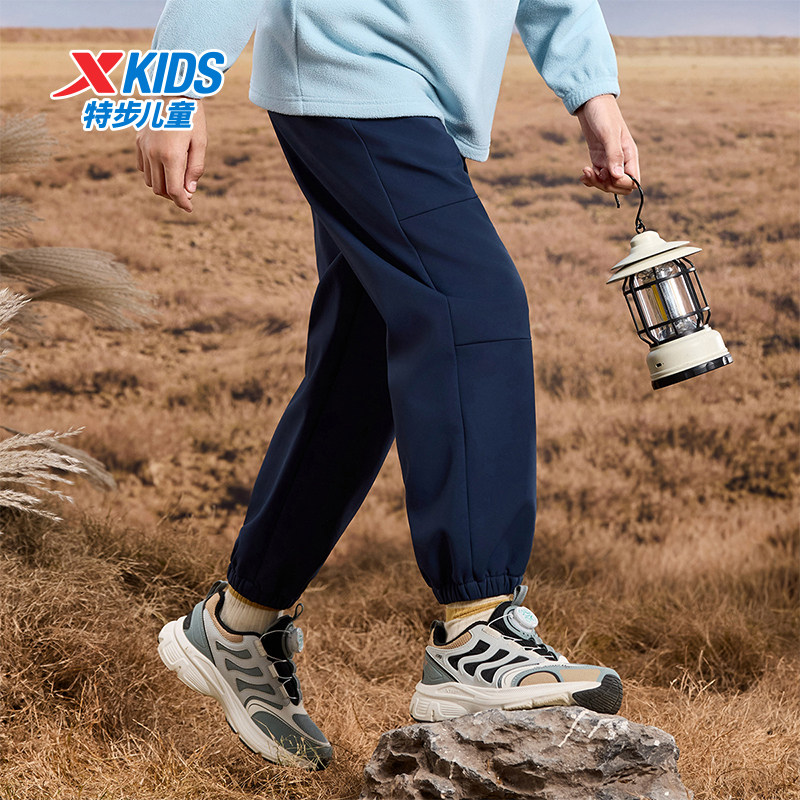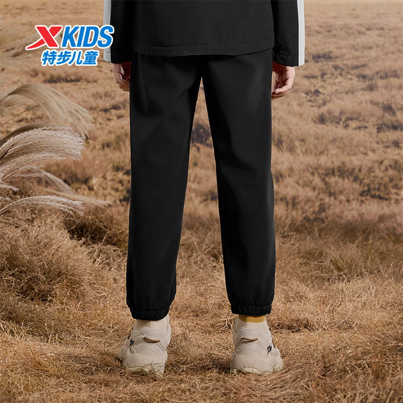 特步运动裤男童女童秋季官方休闲梭织长裤纯色显瘦运动裤中大童