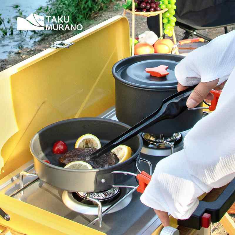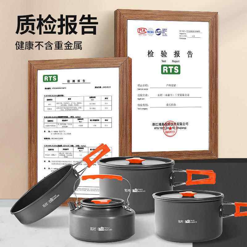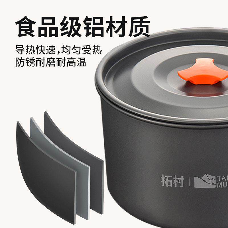 拓村户外套锅三件套用品野餐炊具野炊2-3人锅具野外炉水壶黑色橙
