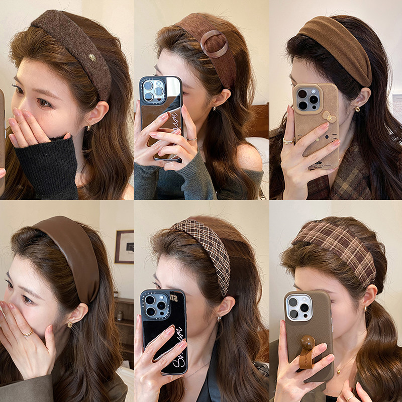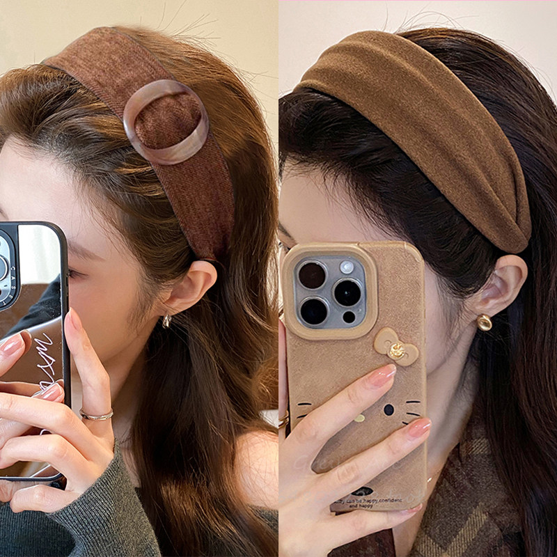 咖色系高颅顶宽边发箍女秋冬新款高级感洋气时尚头箍发卡头饰发饰