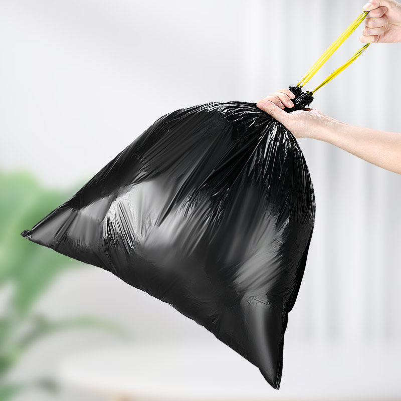 靓涤免撕抽绳式黑色家用垃圾袋加厚手提式收口大塑料袋办公室用