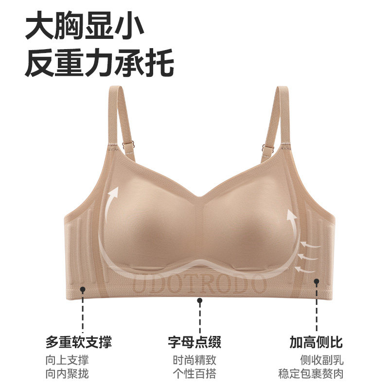 润微提拉内衣女大胸显小无痕提拉防下垂聚拢收副乳胸罩爆款文胸