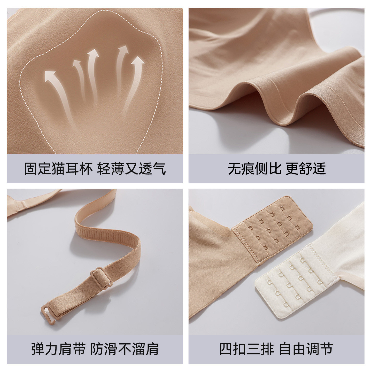 猫人无痕粉底液内衣女大胸显小隐形聚拢细肩带收副乳防下垂文胸罩