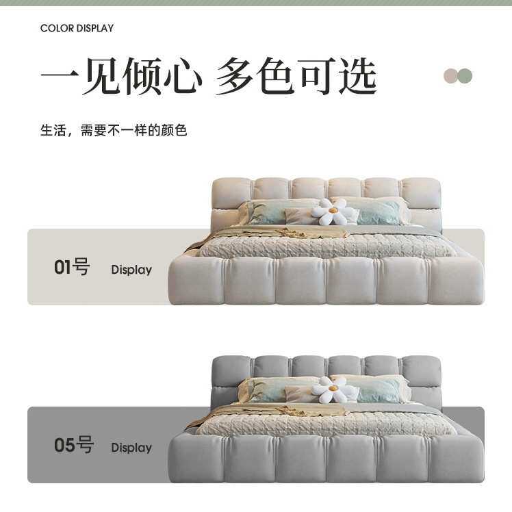 意式极简款1.5双人科技布布艺床现代轻奢主卧1.8网红泡芙榻榻米床