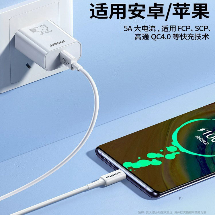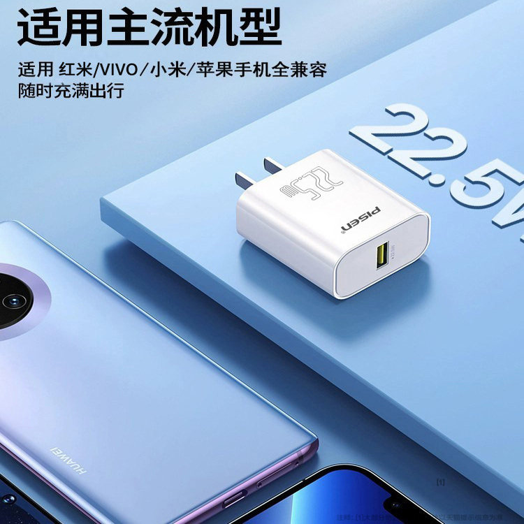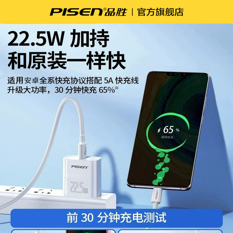 【国家3C认证】品胜适用华为充电器22.5w荣耀超级快充头兼容安卓手机oppo小米usb插头通用三合一数据线套装