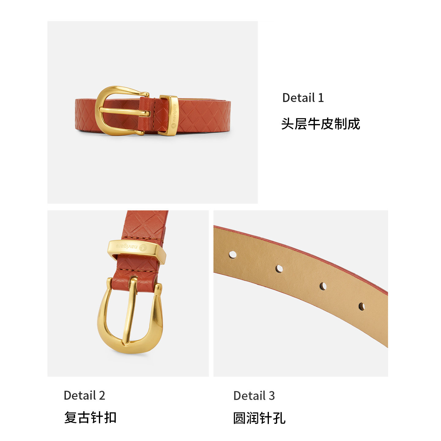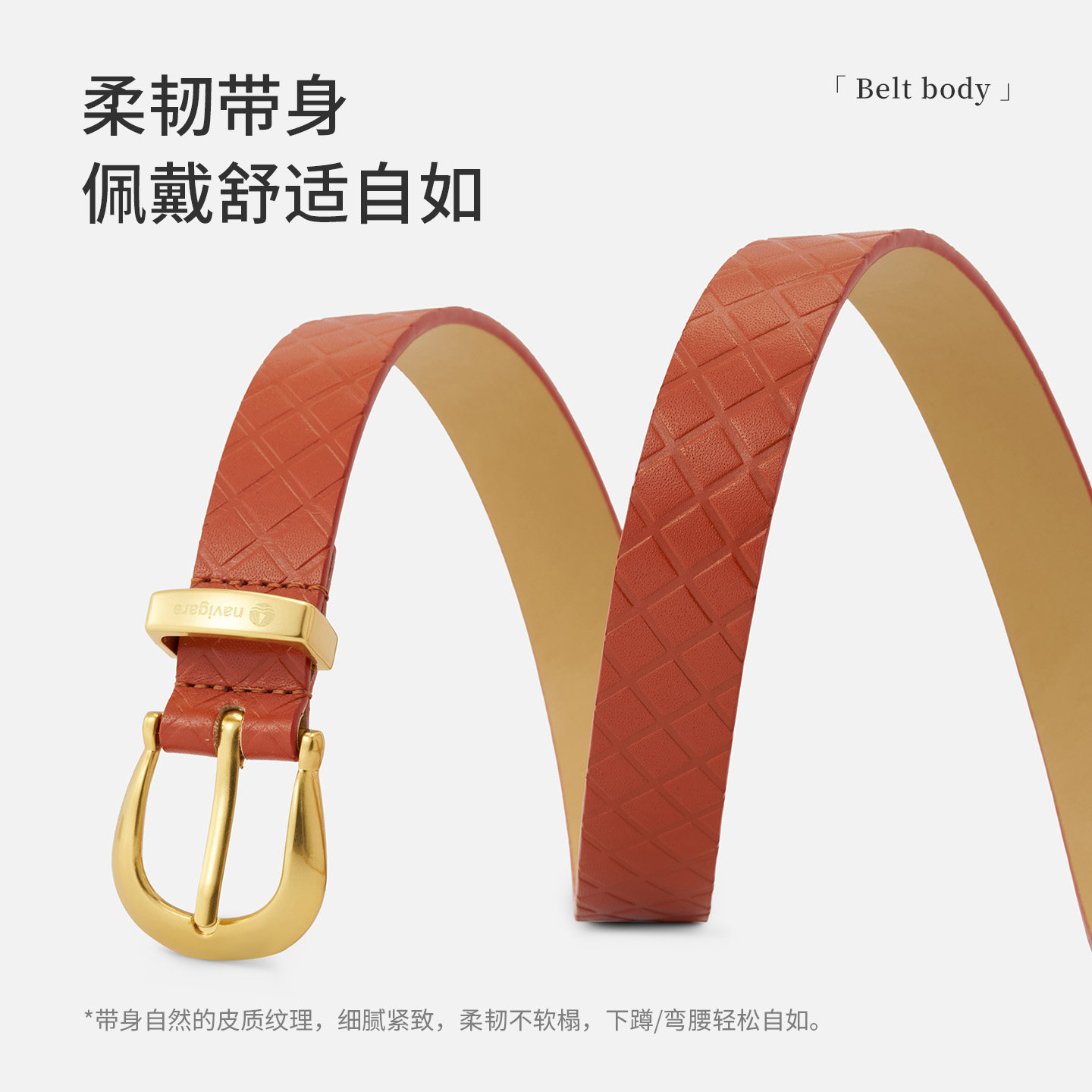 Navigare意大利小帆船女士真皮腰带牛皮针扣皮带百搭菱格肌理裤带