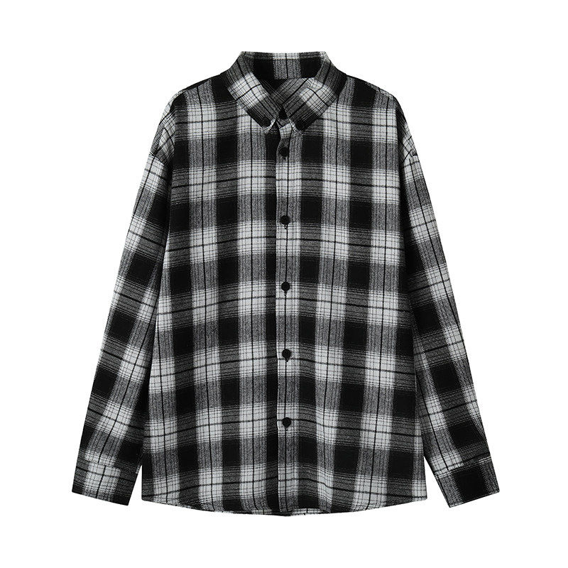 查尔斯桃心美式长袖衬衫男士春秋夏季薄款宽松休闲格子衬衣女外套