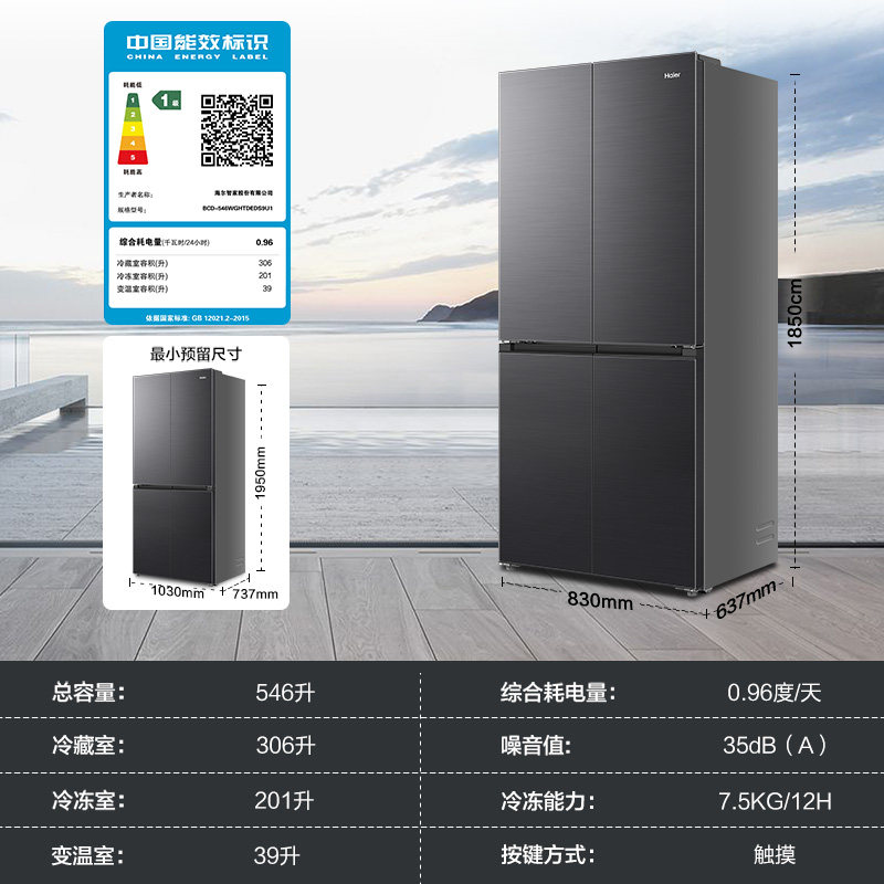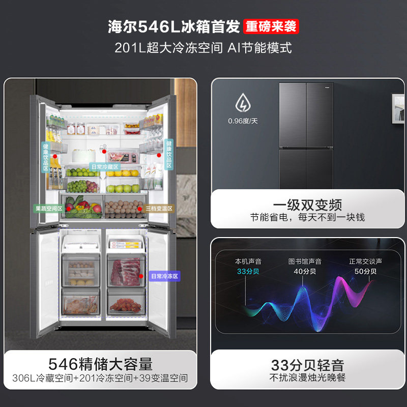 【新品首发】海尔小红花546L十字四开门风冷无霜电冰箱539升级款